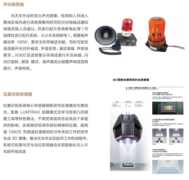 5、位置識(shí)別系統(tǒng):采用定位及位置識(shí)別最新技術(shù),通過(guò)圖像識(shí)別傳感器,識(shí)別鋼卷和吊具的位置,進(jìn)行計(jì)算和分析判斷吊具與鋼卷具備吊掛和起吊條件,進(jìn)行語(yǔ)音提示,系統(tǒng)具有自動(dòng)識(shí)別跟蹤鋼卷與吊具的距離,操作工實(shí)時(shí)掌握清晰的位置及畫(huà)面信息,準(zhǔn)確無(wú)誤的操作,與天車定位系統(tǒng)拓展能達(dá)到自動(dòng)起吊,最終實(shí)現(xiàn)智能化、無(wú)人化行車的升級(jí)改造。該系統(tǒng)能極大的減少操作人員的誤操作,給生產(chǎn)及安全提供有力保障,提高生產(chǎn)效率及設(shè)備安全性。