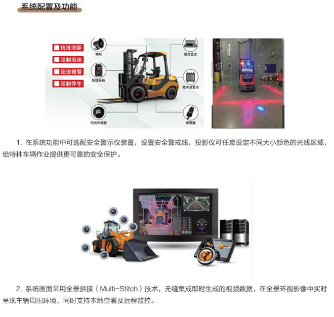 1.基于360°全景環(huán)視監(jiān)控技術(shù),任意設(shè)定警戒區(qū)域、危險區(qū)域大小及形狀,無死角保護車輛設(shè)備駕駛作業(yè)安全,最大偵測范圍4-5米,防撞距離掃描達20米以上,安裝投影儀可設(shè)置警戒線,投影光線在地面形成一個安全范圍