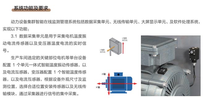 動(dòng)力設(shè)備集群智能在線監(jiān)測(cè)系統(tǒng)是通過(guò)智能遠(yuǎn)程運(yùn)維系統(tǒng)(RMS)完成工業(yè)生產(chǎn)線的電機(jī)、減速機(jī)、風(fēng)機(jī)、高低壓變電、泵閥等設(shè)備運(yùn)行狀態(tài)信息及故障信息檢測(cè),通過(guò)檢測(cè)設(shè)備的溫度、震動(dòng)、轉(zhuǎn)速、電流、電壓等數(shù)據(jù)實(shí)時(shí)分析處理運(yùn)行設(shè)備狀況,同時(shí)通過(guò)信息報(bào)警推送,智能分析設(shè)備運(yùn)行狀況并實(shí)時(shí)報(bào)警等功能,能迅速找到解決問題的方法。通過(guò)在線檢測(cè)系統(tǒng)全面實(shí)現(xiàn)對(duì)關(guān)鍵設(shè)備的全生命周期管理,提高了設(shè)備有效運(yùn)維時(shí)間和效率,降低設(shè)備運(yùn)維成本,降低設(shè)備故障時(shí)間,減少現(xiàn)場(chǎng)人員維護(hù)量,降低維護(hù)人員的依賴性。